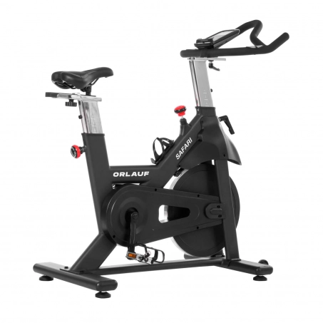 Orlauf Safari — коммерческий спин-байк для фитнес-клубов и домашнего использования. Ключевое преимущество — полная автономность: тренажер работает без электросети, что обеспечивает свободу размещения. Конструкция рассчитана на пользователей весом до 160 кг и вертикальную посадку для правильной биомеханики.