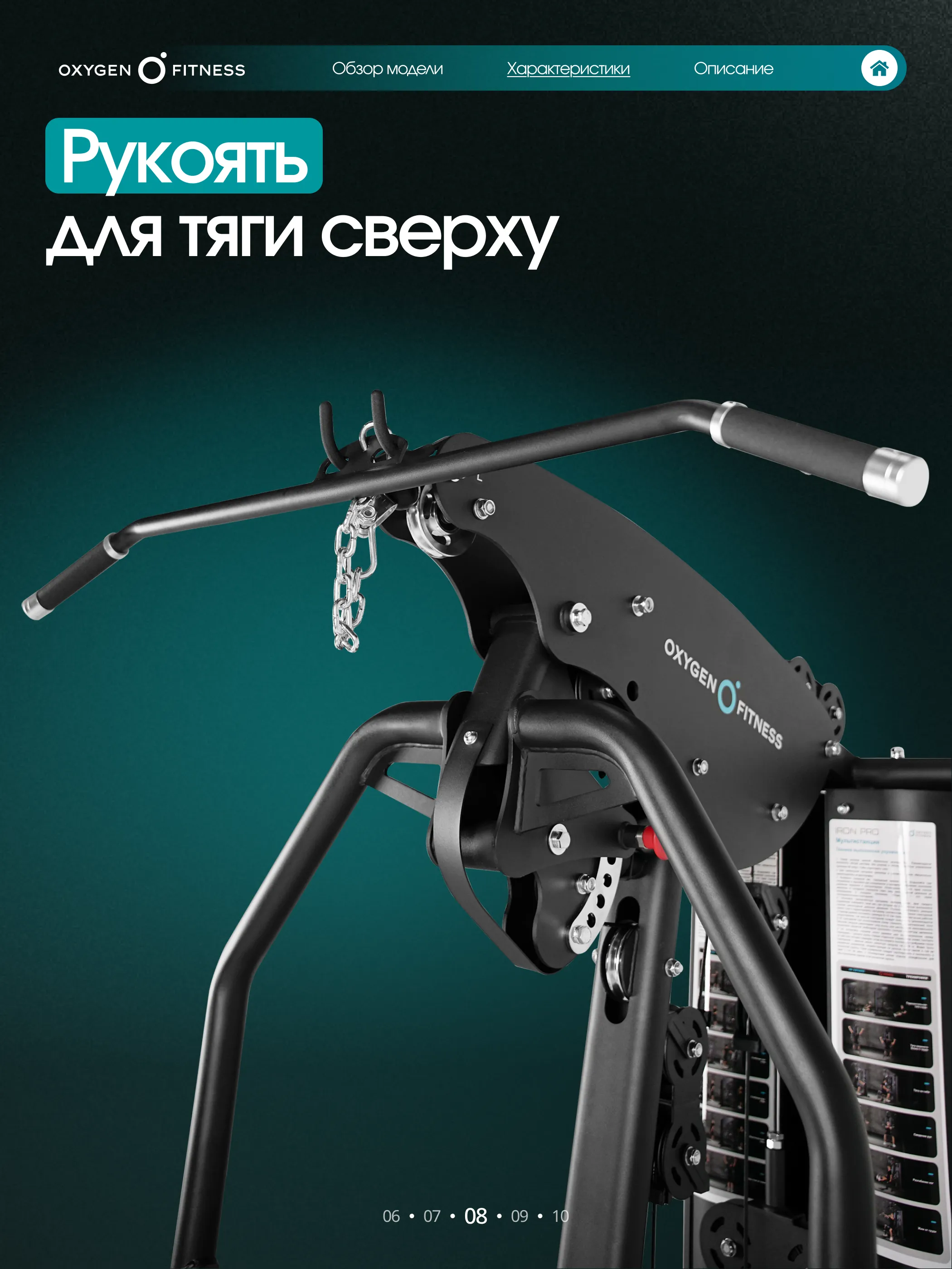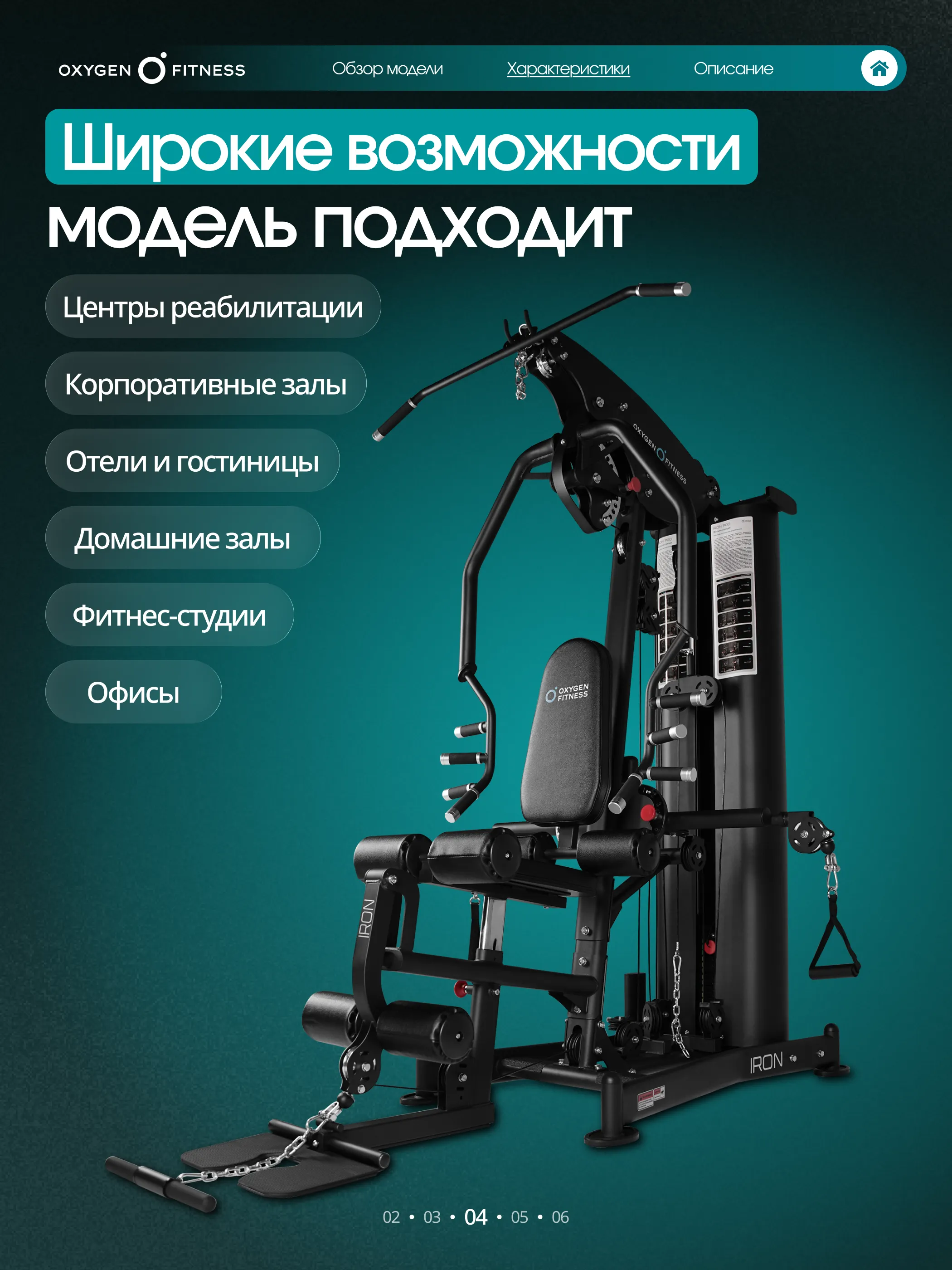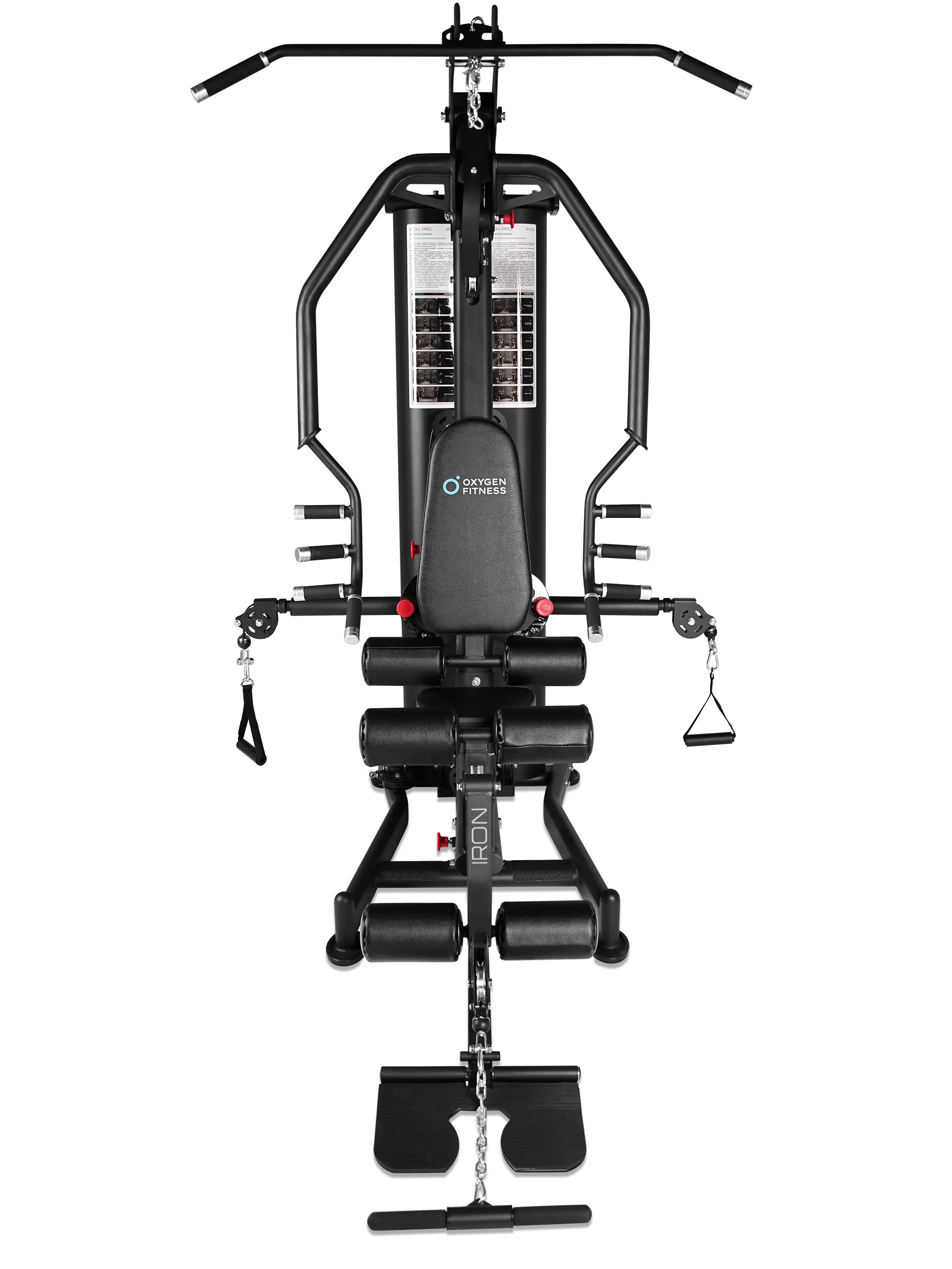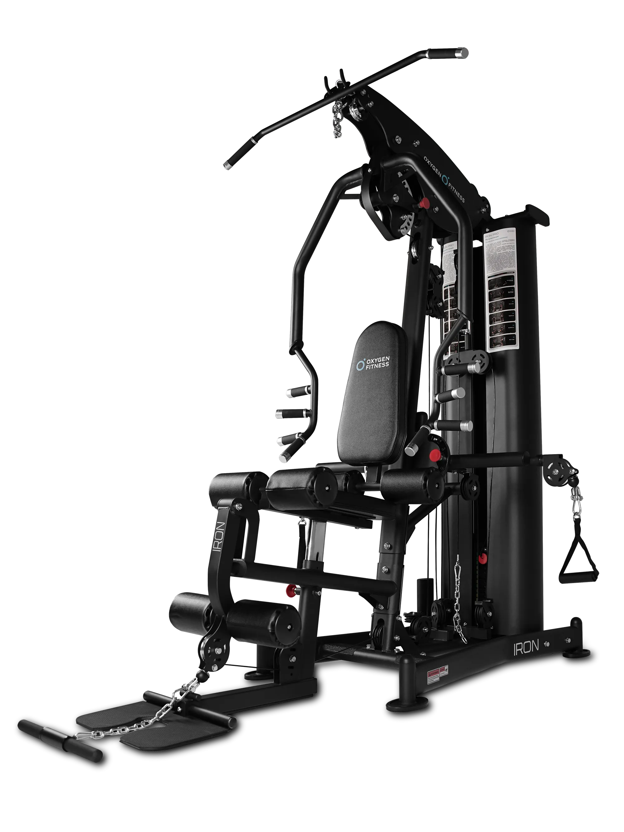 OXYGEN FITNESS IRON — это универсальный силовой комплекс, созданный для полноценной тренировки всего тела на профессиональном уровне. Модель сочетает в себе прочную конструкцию, плавную работу механизмов и широкий диапазон регулировок, позволяя выполнять десятки упражнений на основные группы мышц: грудь, спину, плечи, руки и ноги.