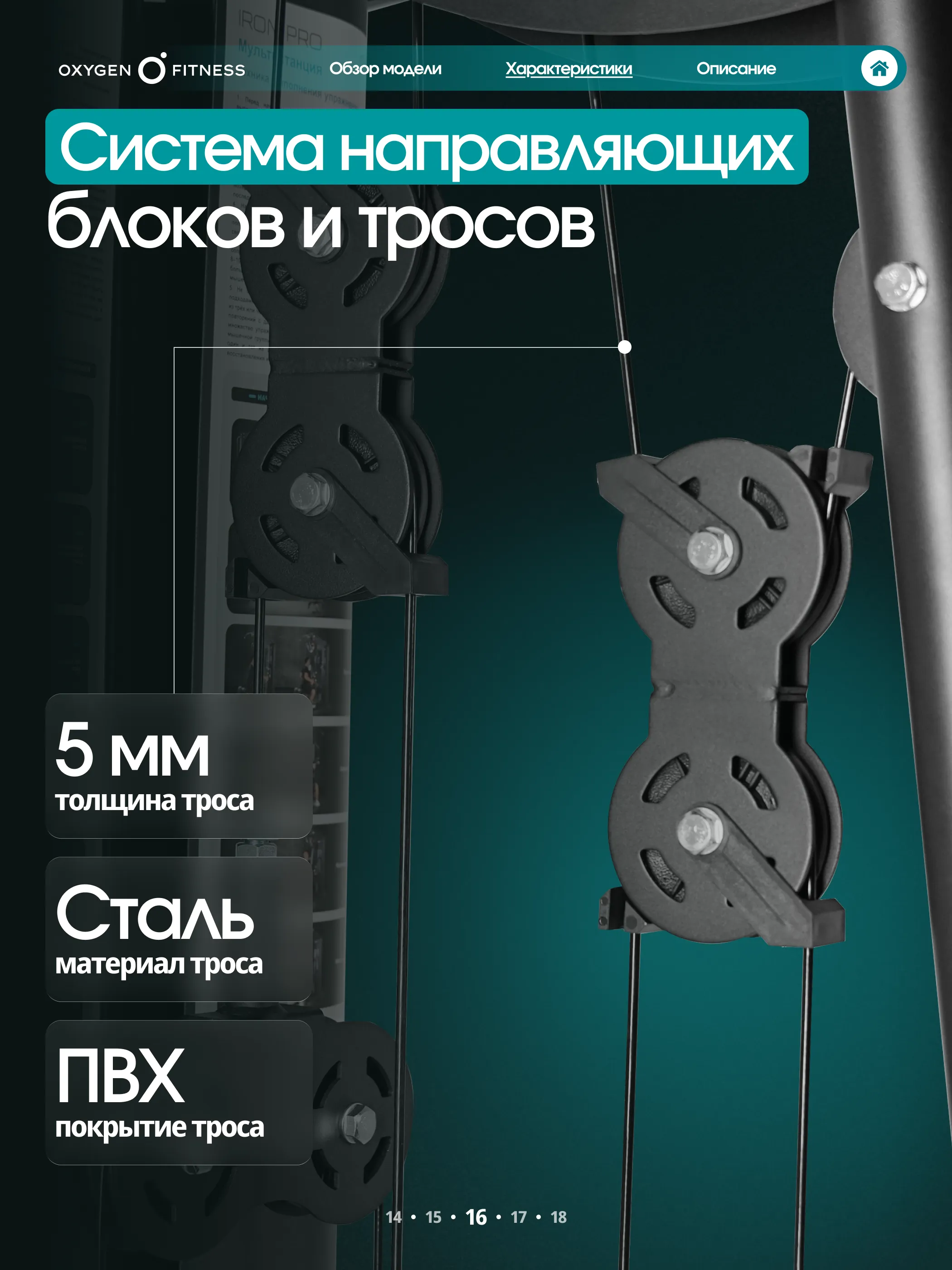 Такая система позволяет точно подбирать рабочий вес и постепенно увеличивать нагрузку по мере роста силы. Передача усилия осуществляется через стальной трос диаметром 5 мм, обеспечивающий плавное и стабильное движение без рывков и лишнего шума.