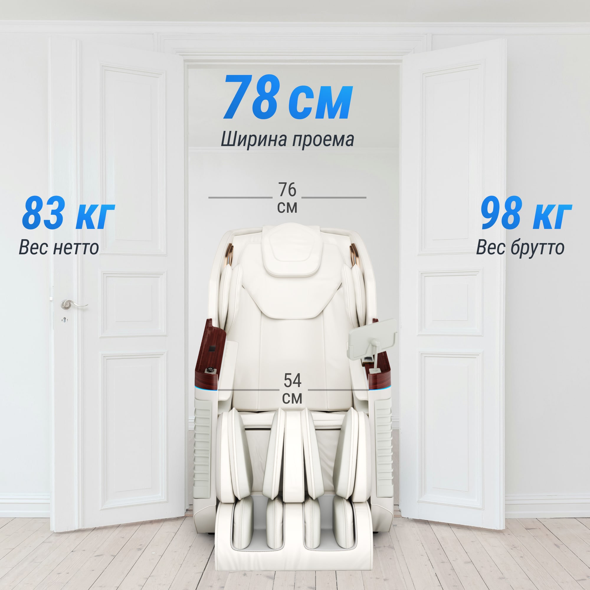- Внимание! При установке массажного кресла следует убедиться в наличии достаточного свободного пространства: